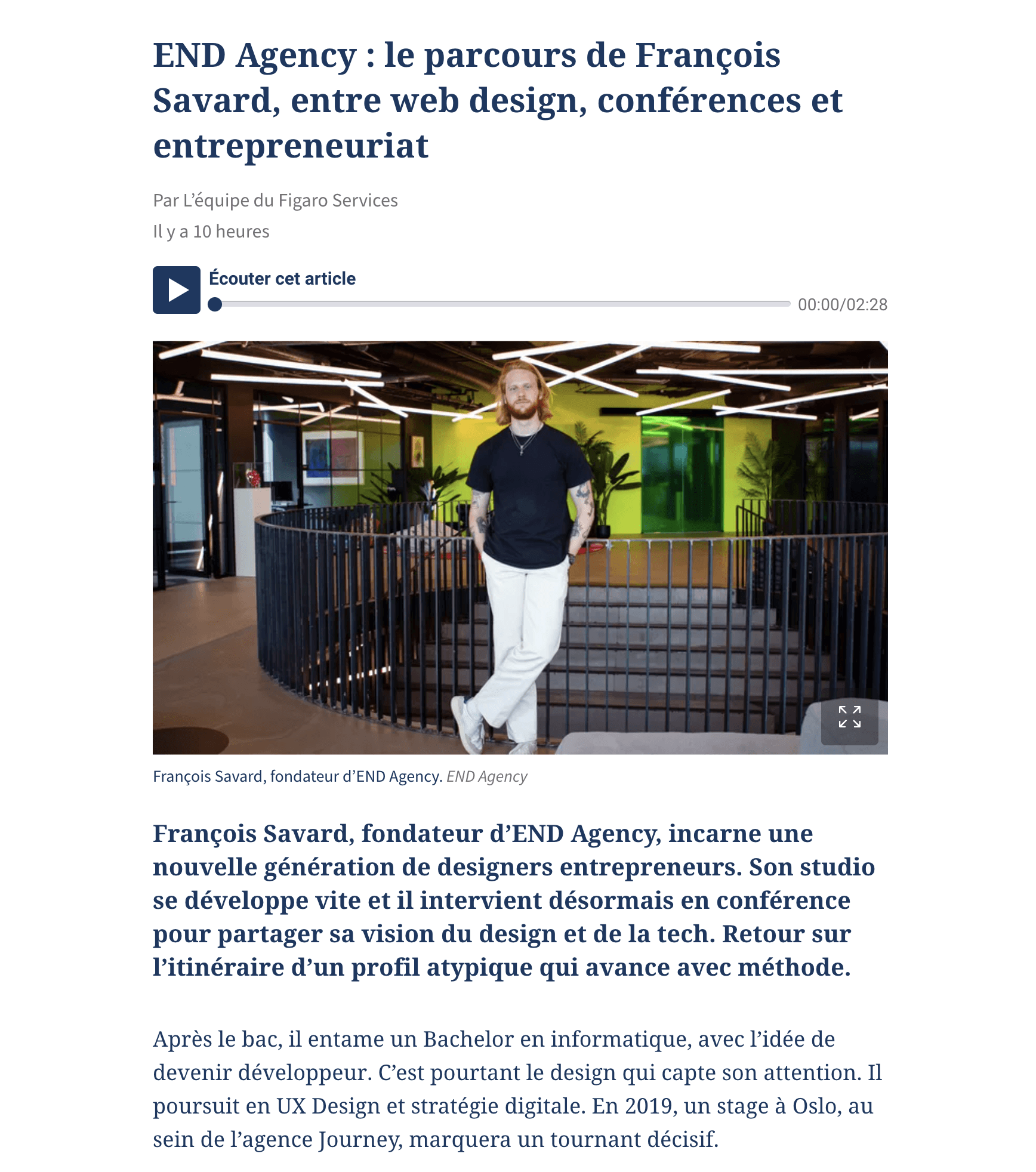 Basé dans le sud de la France, je suis un designer et entrepreneur spécialisé dans la Fintech, la crypto et l'IA. Je suis co-fondateur d'une startup norvégienne basée dans la legal tech, Advokatguiden.no et j'ai créé mon studio de design END Agency en 2024.